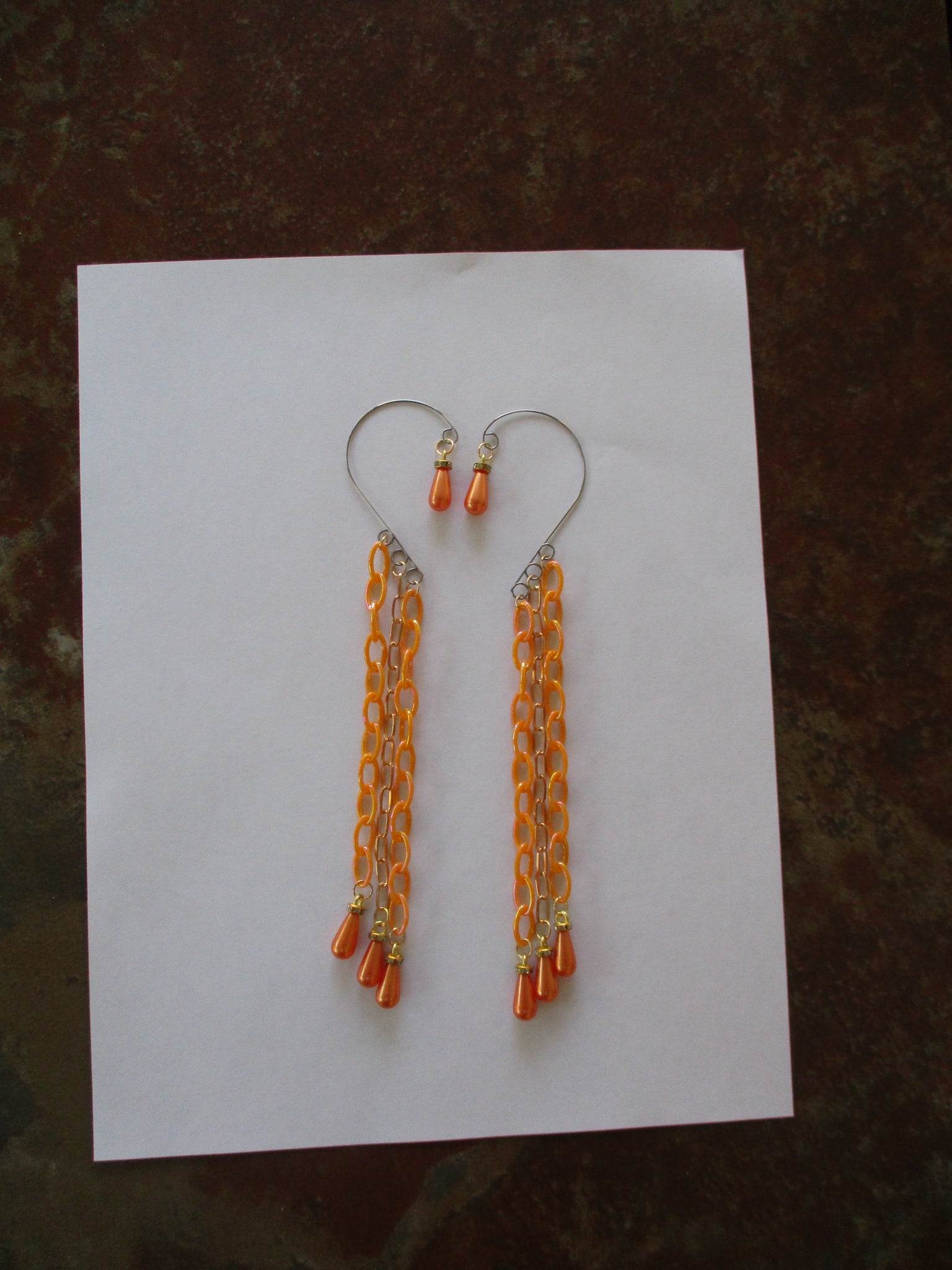 Orange Chain Gold Chain Orange Tear Drop Pearls Ear Cuffs (EC176)