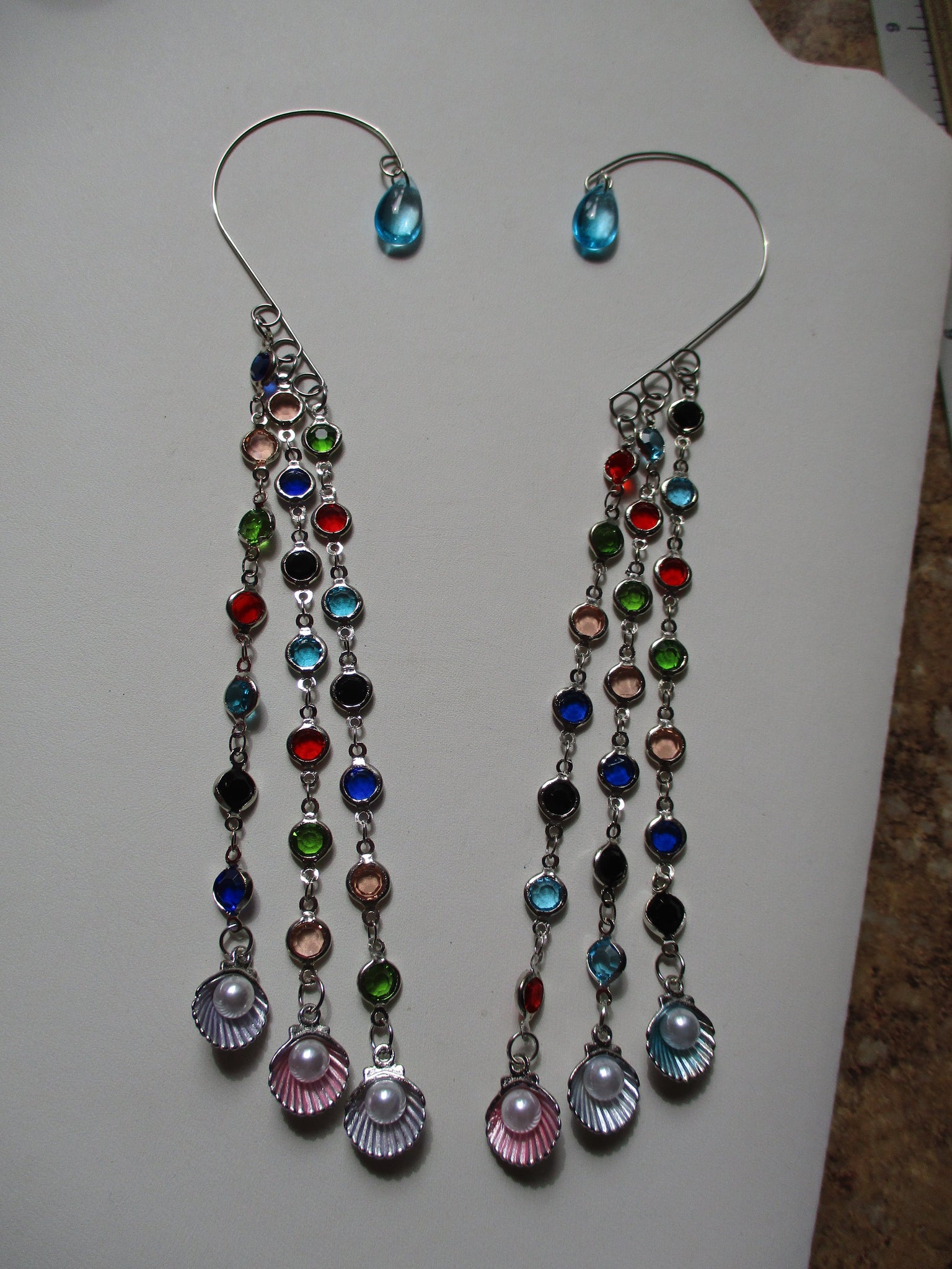Silver Ear Cuffs Silver Multi Color Bead Chain Silver Shells w/Pearl (EC173)